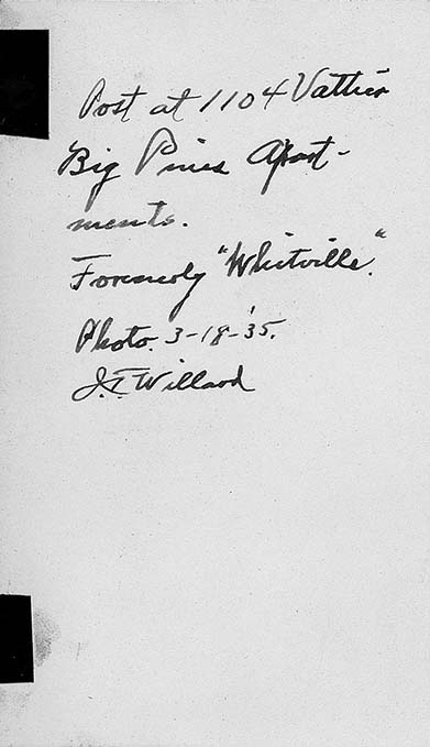 Decorative post in front of Big Pines Apartments on Vattier St, Manhattan, KS, March 18, 1935