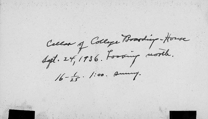 College Boarding-House's Cellar with a barn to the left, September 24, 1936
