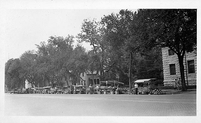 Truck Farmers' Market on north side of Poyntz Ave between 5th and 6th St, Manhattan, KS, 1931