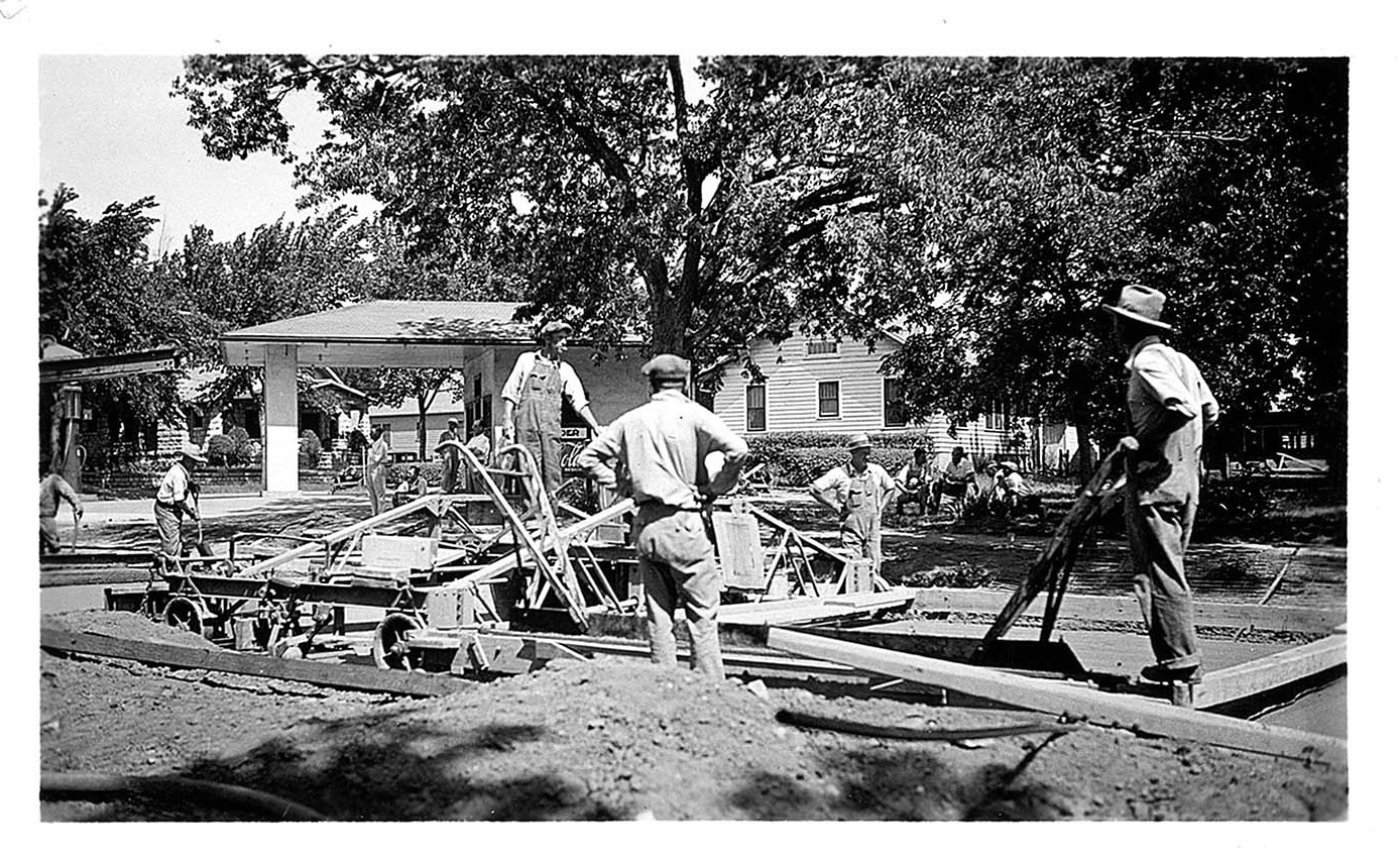 Construction workers prepping ground for the large cement paver at Poyntz Ave and Seventeenth St, Manhattan, KS May 30, 1934