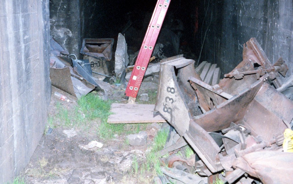 Debris from destroyed spouts and conveyors in # 1 tunnel.