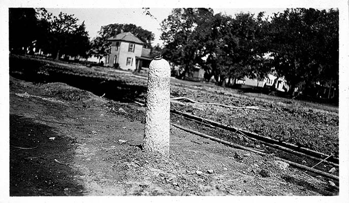 Stone hitching post on Poyntz Ave, Manhattan, KS