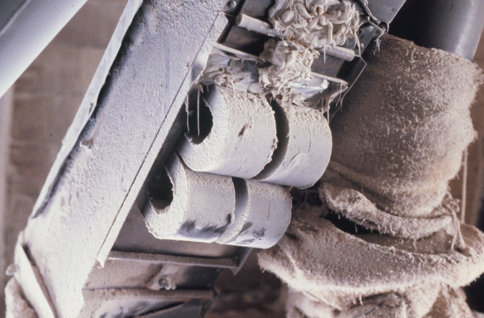 Magnet above roller mill in feed mill.