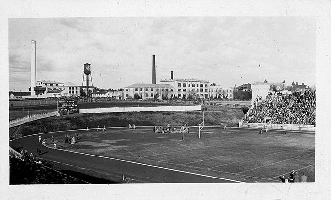 Between halves of the Kansas State College versus University of Nebraska football game