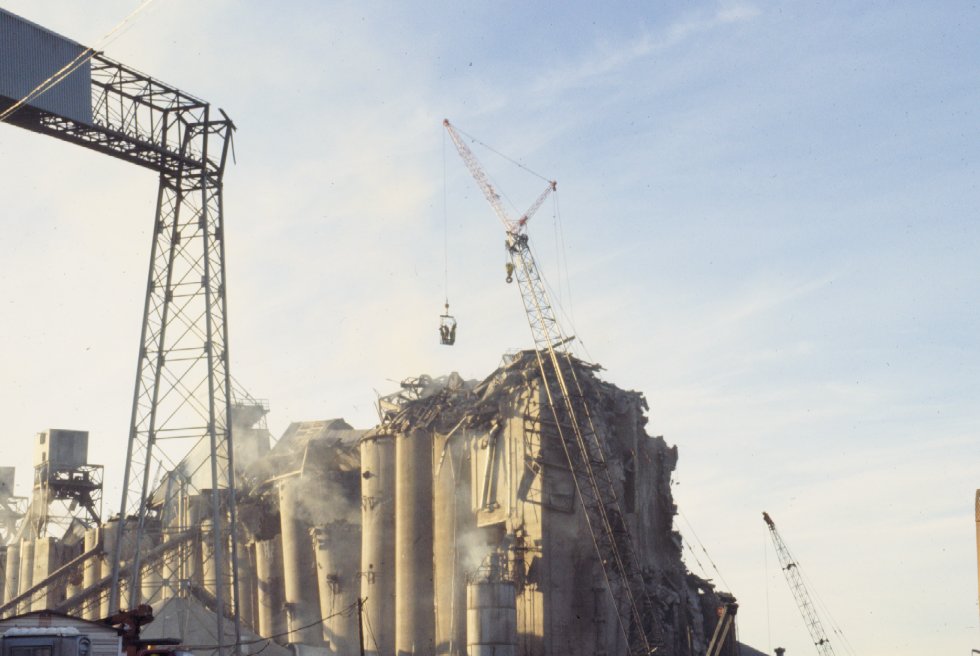 Workers were lifted up on a platform to search for a missing employee.