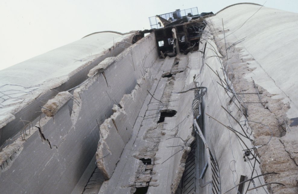 Concrete leg wells blown out - belts removed.