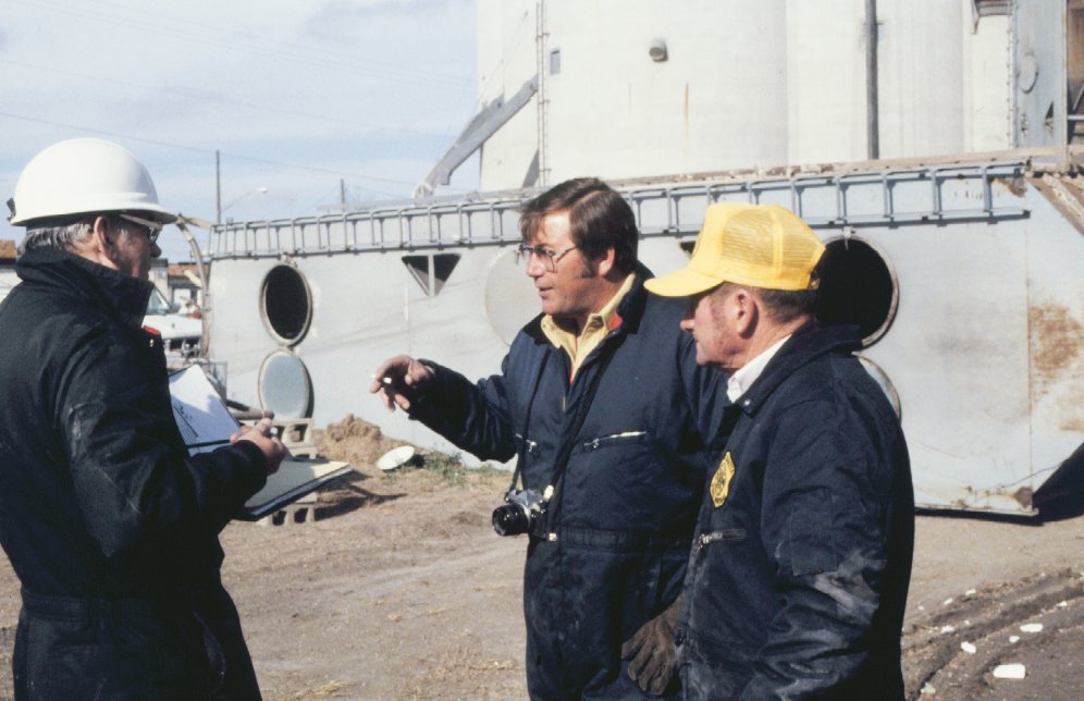 OSHA inspector on left conferring with state fire marshals.