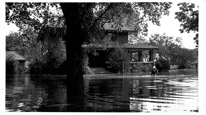 Bathers in the flood waters in front of the residence of Henry Otto, 1207 Houston St, Manhattan, KS, June 4, 1935