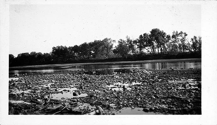 Glacial terminal moraine in Kansas River south of St. George, Kansas in 1936