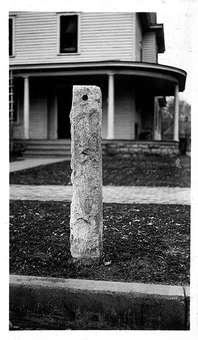 Stone post at 612 Fremont St, Manhattan, KS, February 23, 1935
