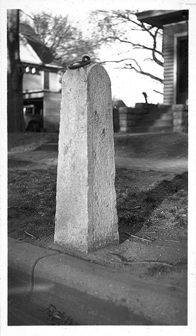 Stone post at 223 Fifth St, Manhattan, KS, March 11, 1935