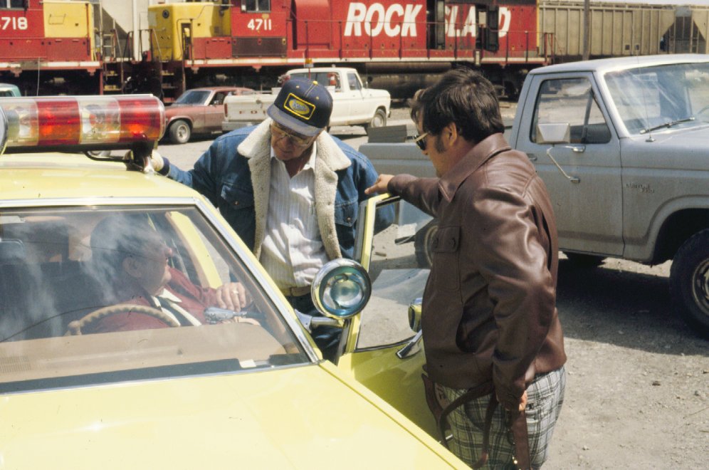 Fire Chief Elgan with Dick Elliot (Agri) and salvage contractor.