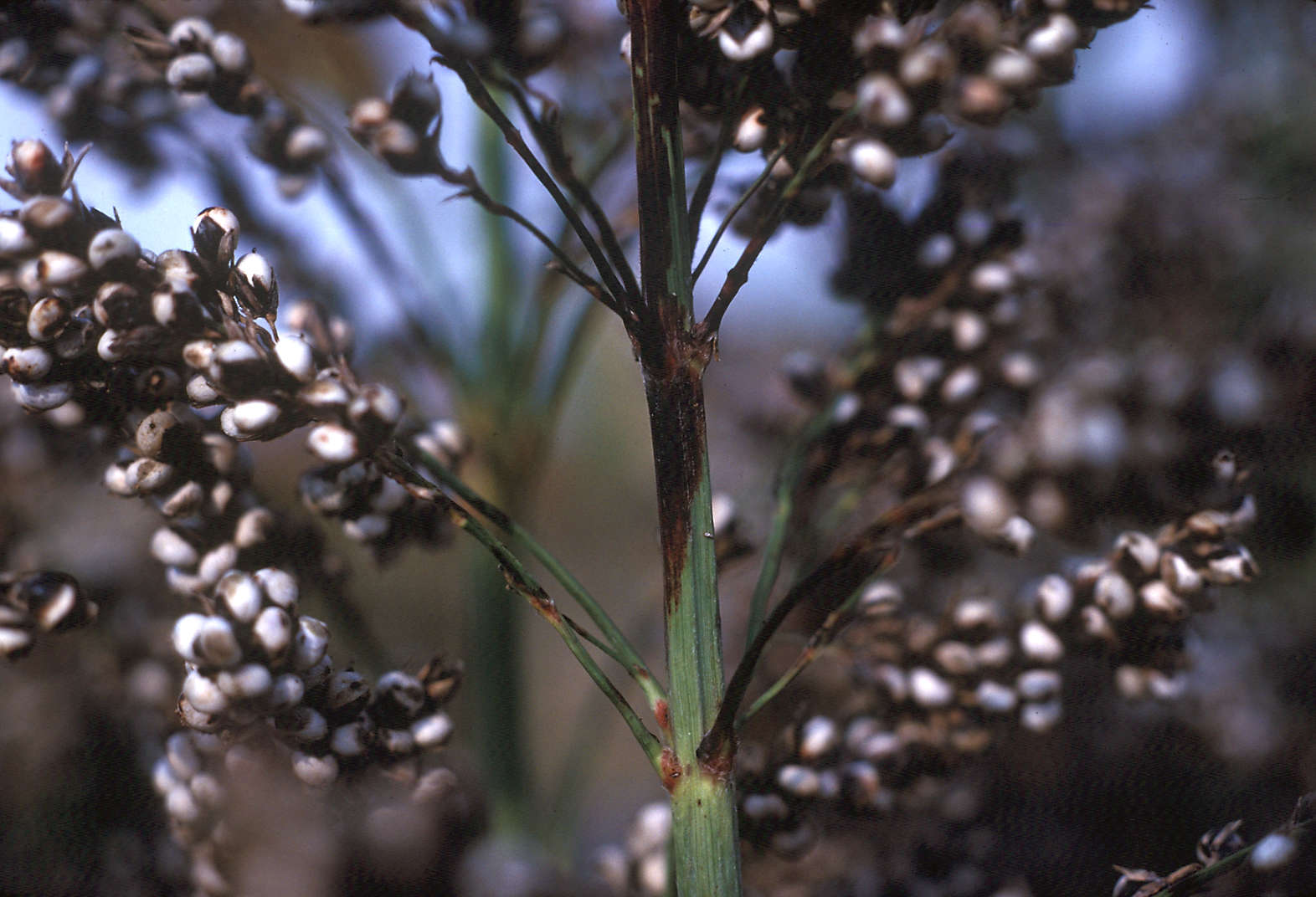 Reddish lesions on panicle and racemes