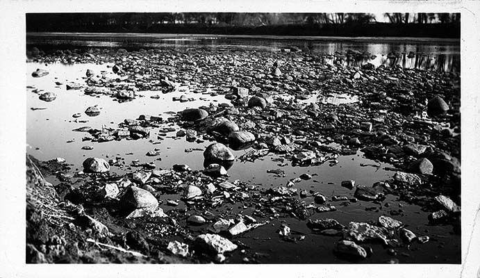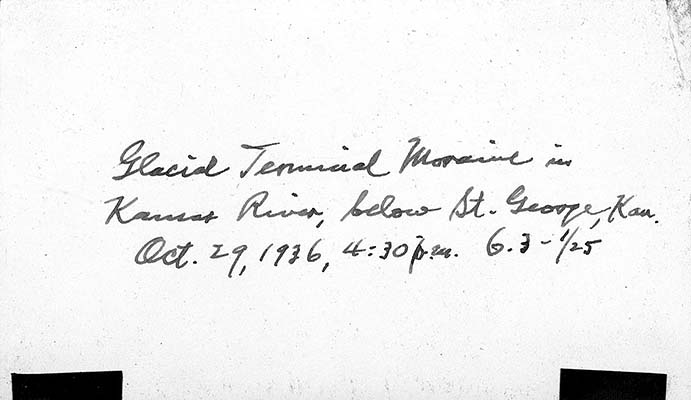 Close-up of glacial terminal moraine in Kansas River south of St. George, Kansas in 1936