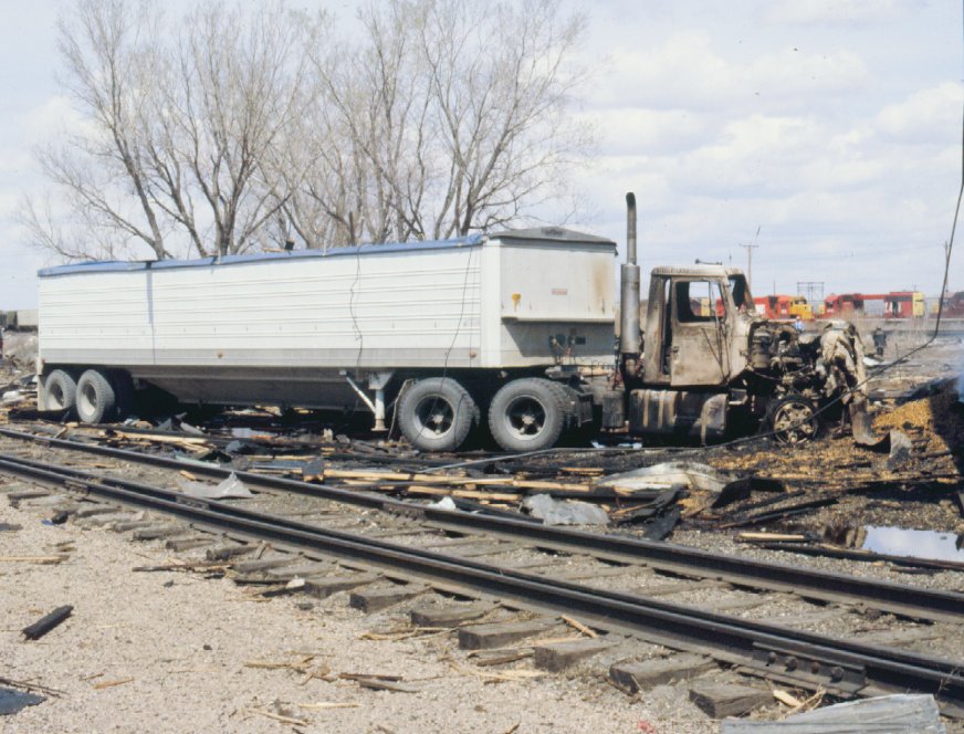 Semi truck waiting to unload damaged by fire - driver escaped injury.