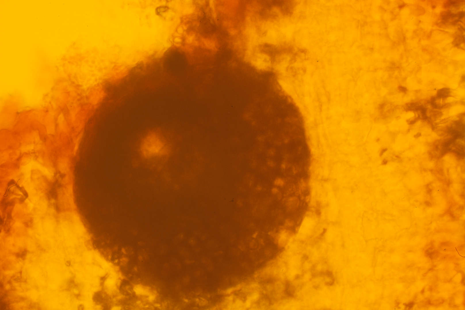 Closeup of sporodichium with gelatinious mass of exuding conidia.