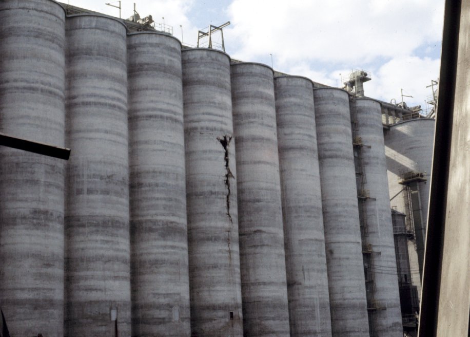 No visible damage to concrete silos.