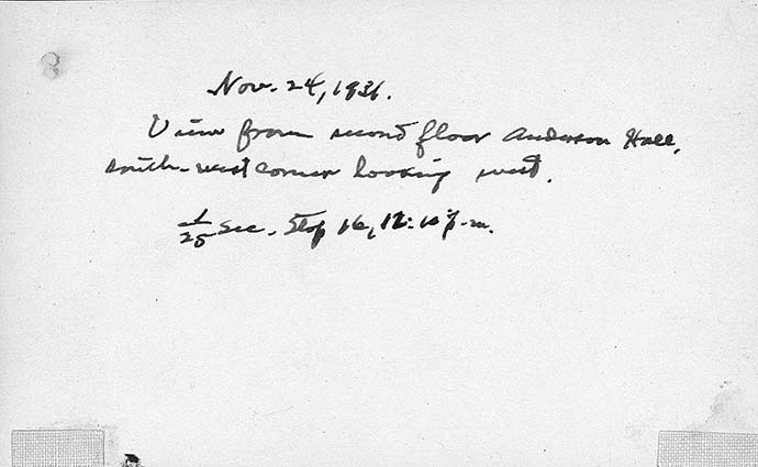 View of trees and campus buildings from the second floor of Anderson Hall
