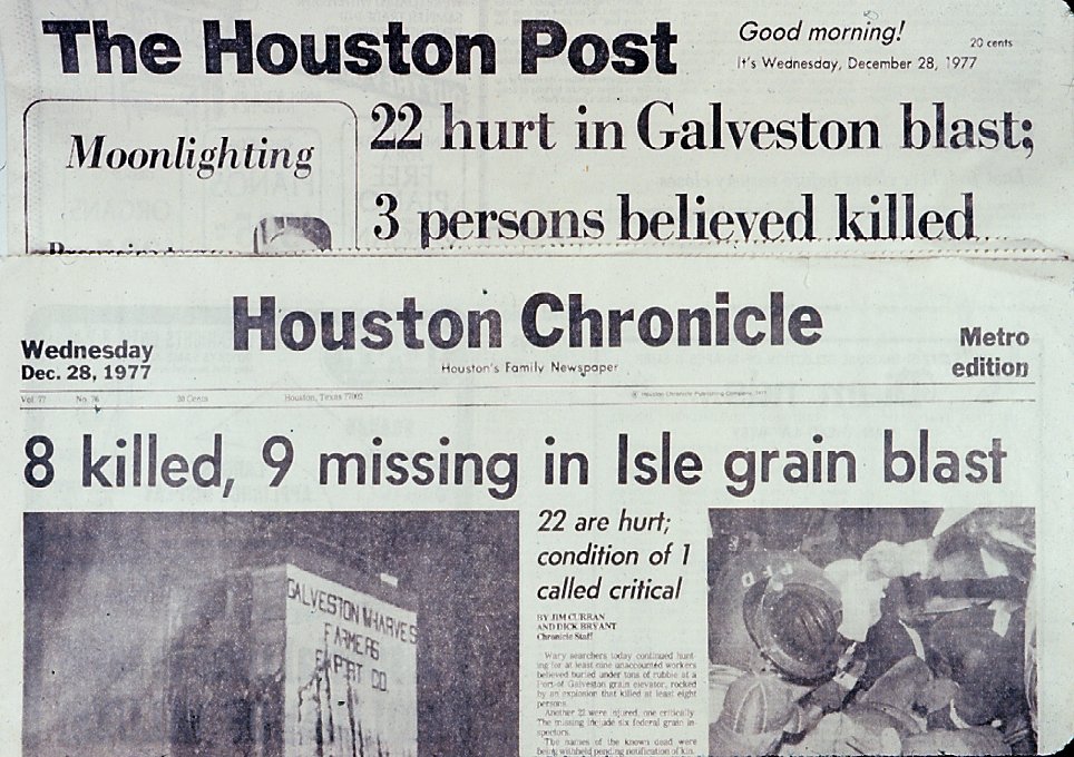 December 28th Houston paper headlines on explosion.