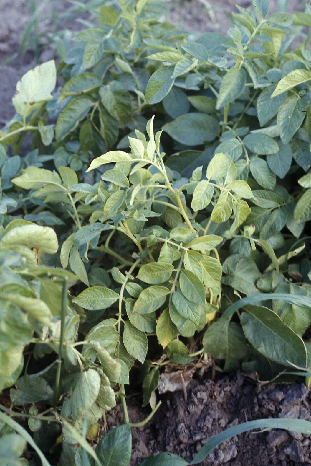 Stems with yellowish coloration a symptom of Rhizoc