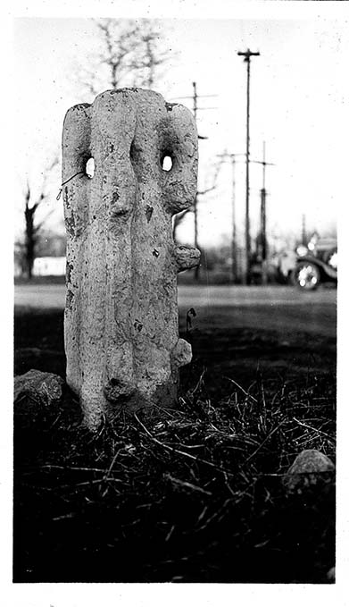 Stone post in Rossville, KS, February 22, 1935