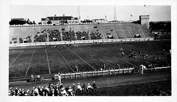 Kansas State Agricultural College versus Fort Hays footbal game at Memorial Stadium