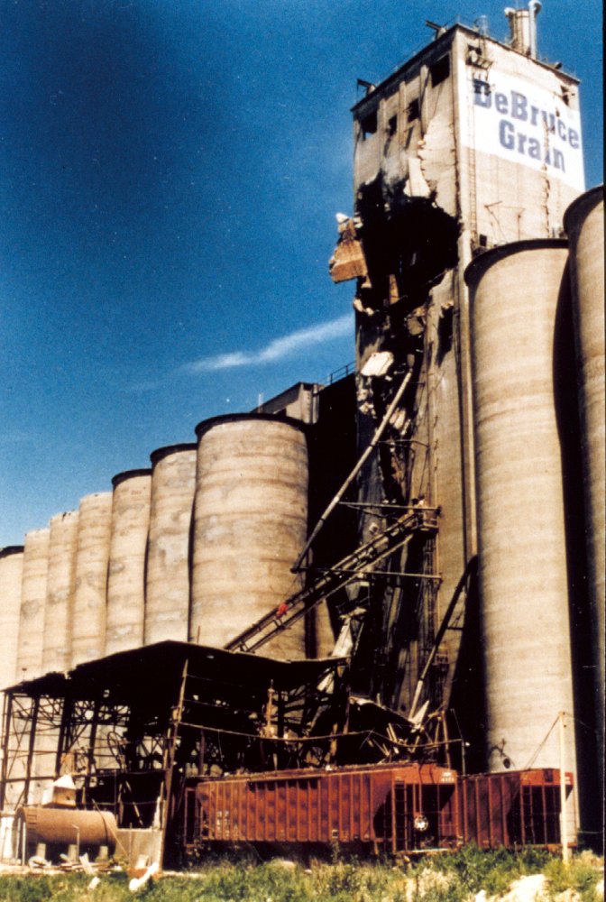Damage to west side of headhouse and rail receiving and shipping shed.