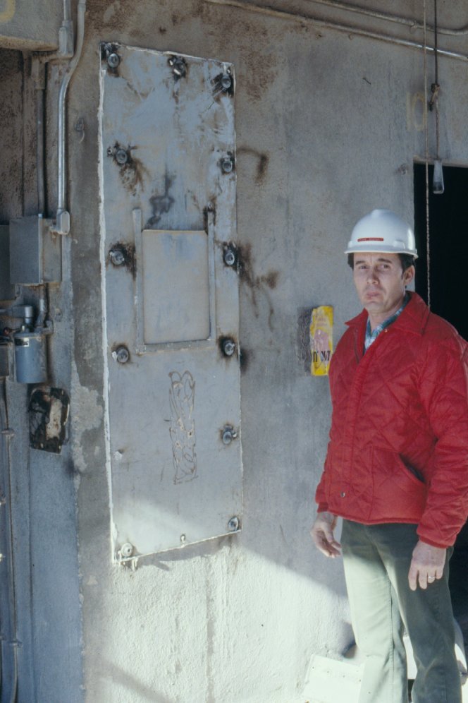 Manager showing g access covers to bucket elevator that were blown off.