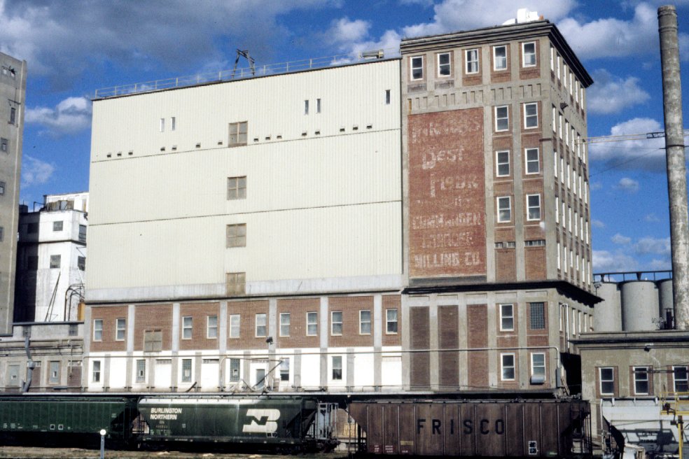 Rebuilt flour mill, October 1982. Note light metal siding that can provide venting relief in case another explosion occurs.