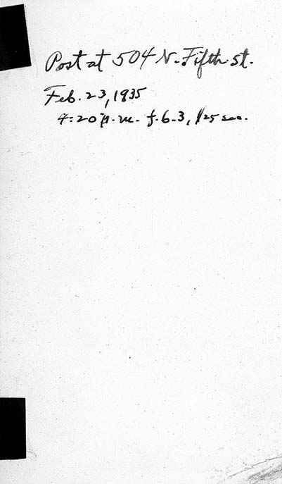 Stone post at 504 North Fifth St, Manhattan, KS, February 23, 1935