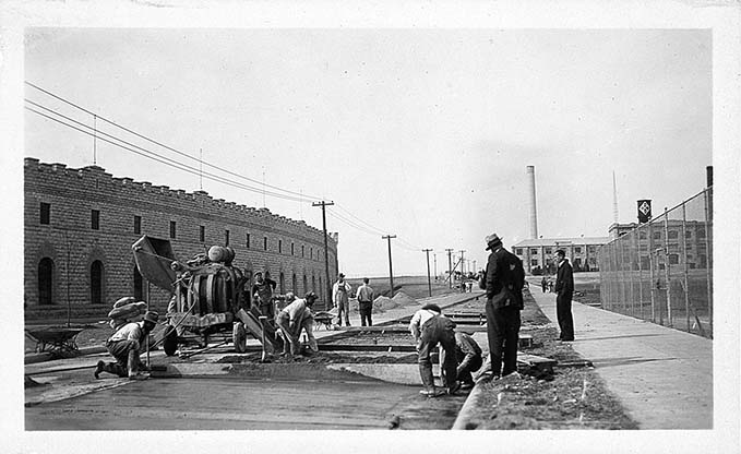 Laying cement for roadwy east of Memorial stadium