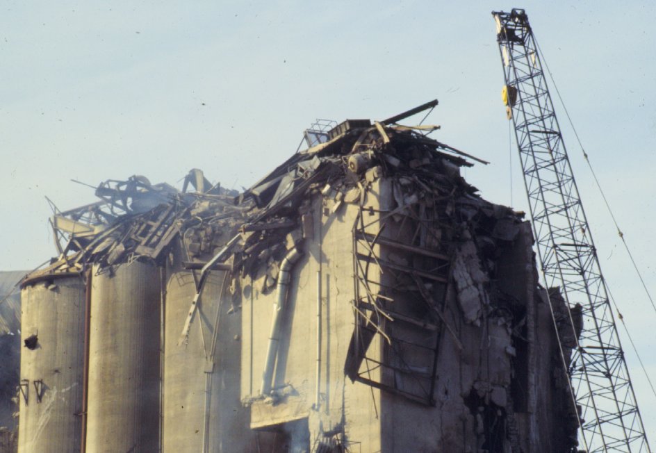 Telephoto picture of debris on top of silos from the destroyed part of headhouse.