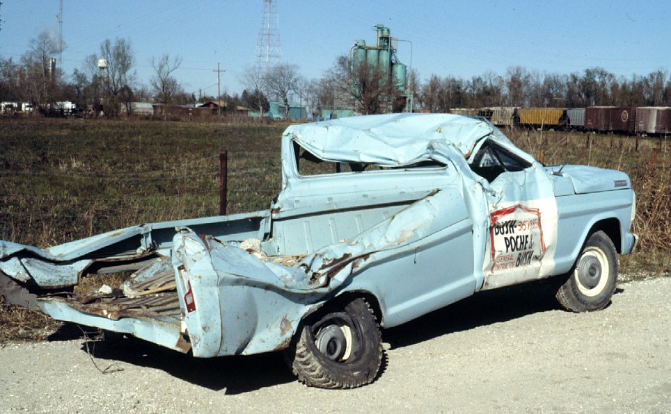 Damaged vehicle.