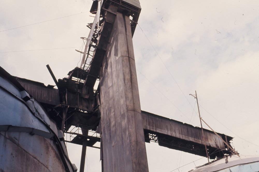Damaged truck receiving station.
