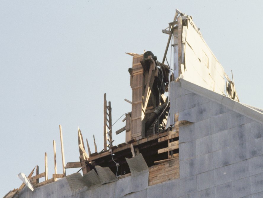 Dust explosion damage to top of elevator.
