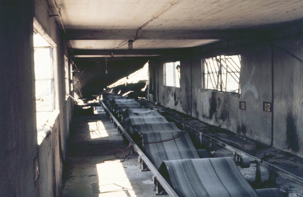 Interior view of damage to conveyor.