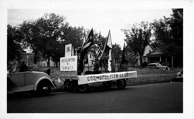 Cosmopolitan Club float, 75th Anniversary Parade, Manhattan, KS, October 29, 1938