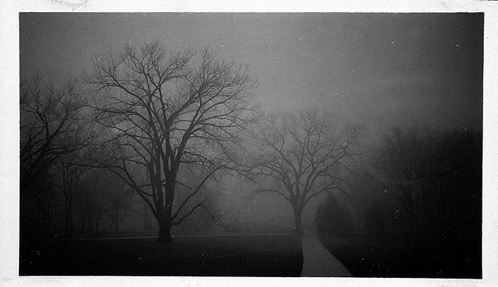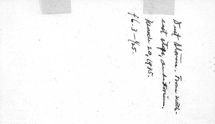 View of a dust storm from the northeast steps of the Auditorium