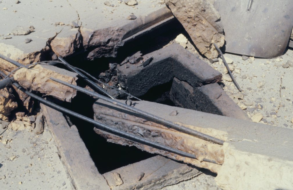 Fire damage at the opening for one of the silos in the south annex.