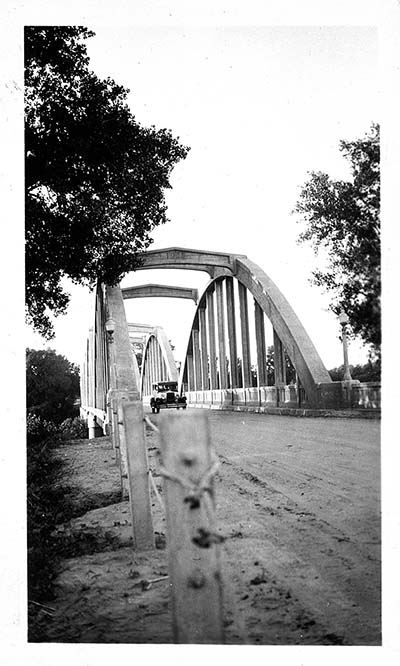 Car driving over the Wamego bridge, Wamego, KS, August 28, 1932