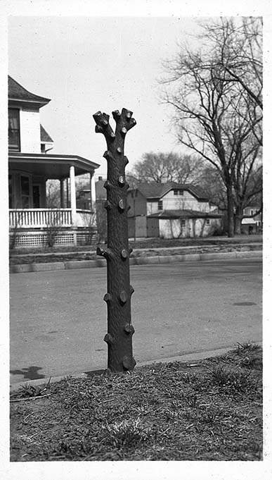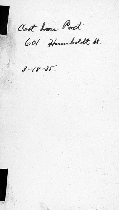 Iron cast post at 601 Humboldt St, Manhattan, KS, March 18, 1935