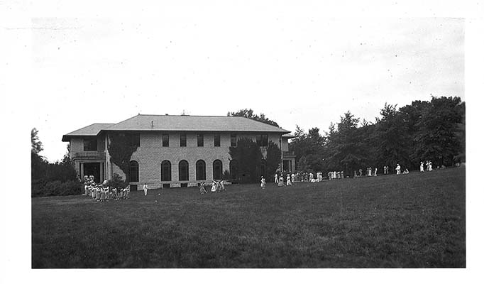 4-H Club members lining up outside of Thompson Hall for the luncheon