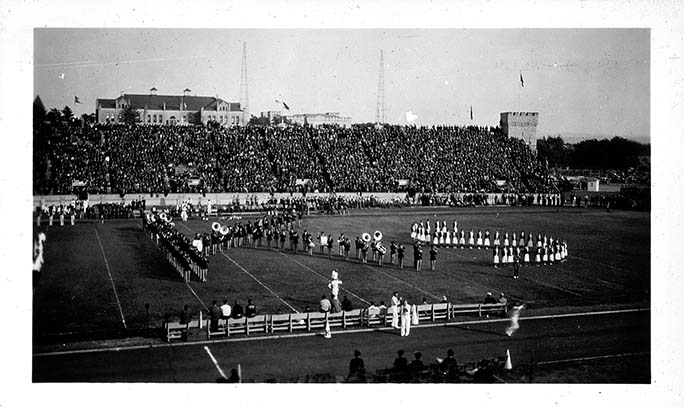 K.S.C. band performing at football game against K.U., October 29, 1938