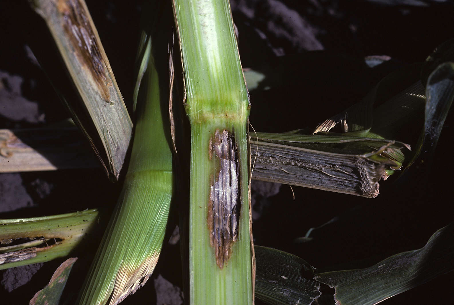 Stalk rot symptoms that failed to cause further damage and was attributable to drought.