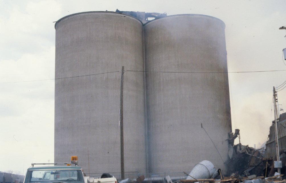East concrete bins full of corn, 500,000 bushels.