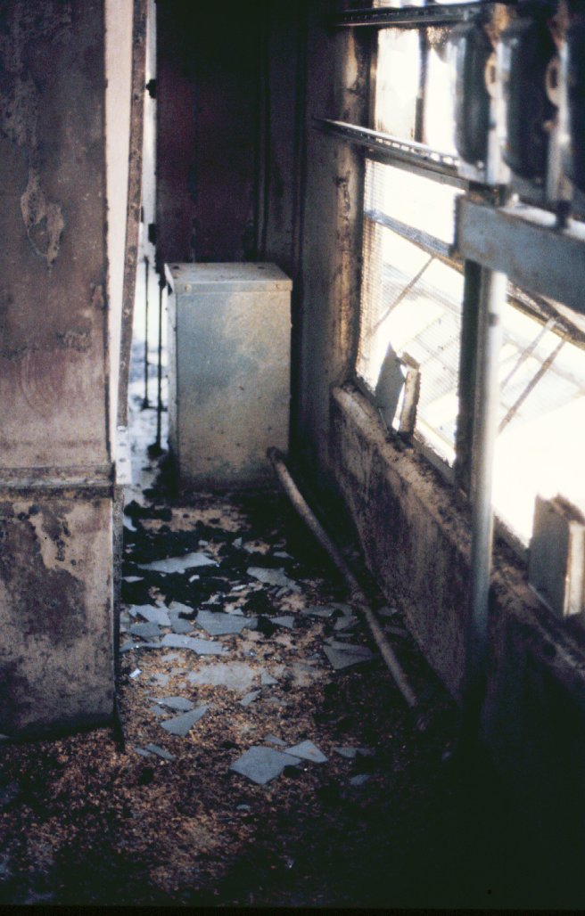 Implosion on north side of headhouse - glass from window on the inside.