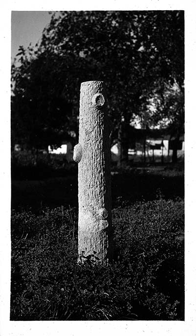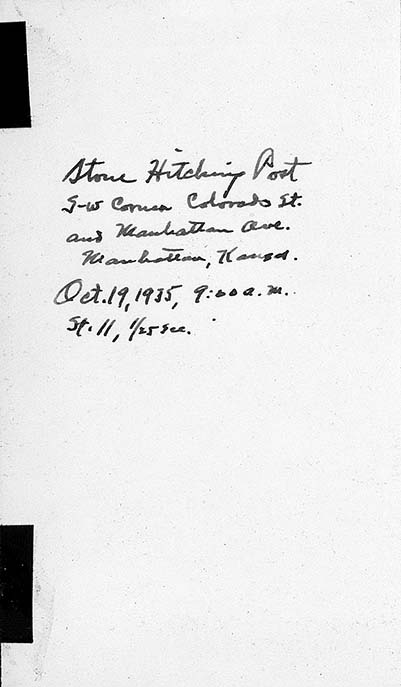 Stone post at corner of Colorado St and Manhattan Ave, Manhattan, KS, October 19, 1935