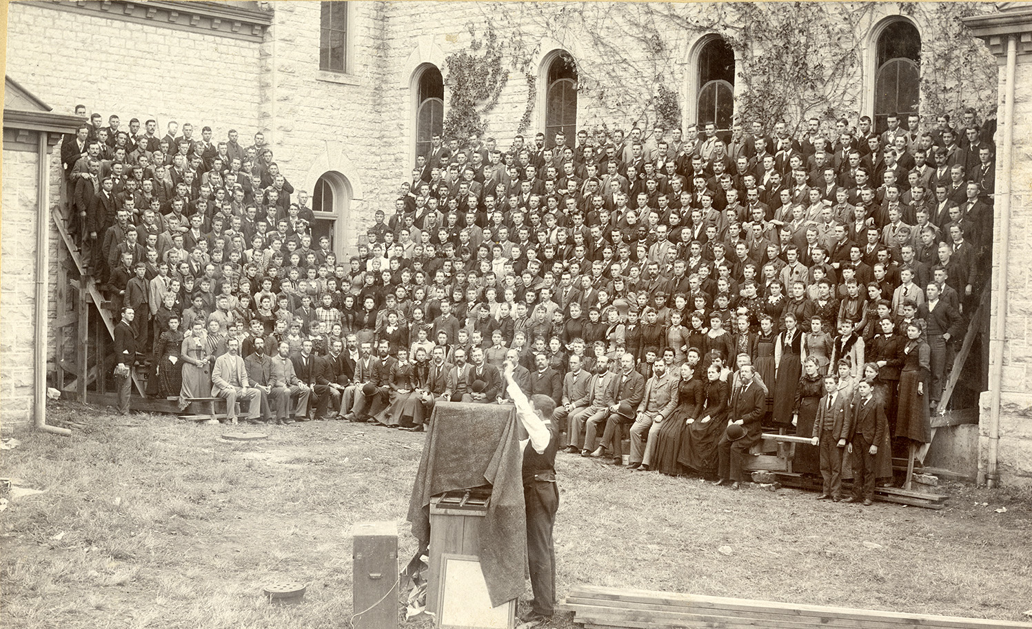 Students and faculty pose for a photo in 1892 on the west side of present-day Anderson Hall.