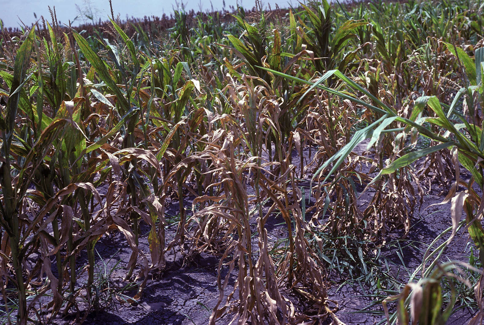 Downy mildew of high incidence and severity resulting in premature death of a susceptible hybrid.