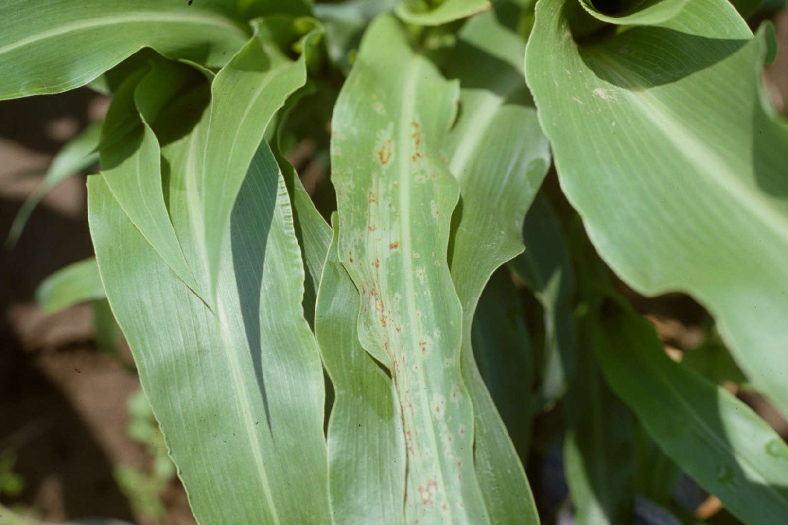 Early stage of infection showing local lesions of sorghum downy mildew.